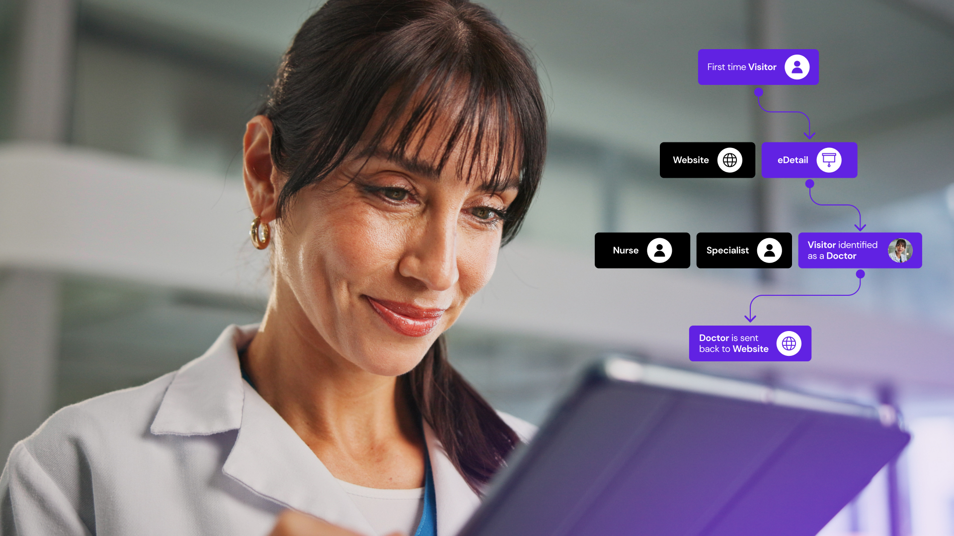 But when we’ve got these pieces organised, we still need to face up to the challenge of shipping it out to HCPs in an effective, efficient, and inspiring way. Again, we have tools ready and waiting. We are able to create tailored journeys for customers based around personalised, interactive and self-service experiences for HCPs.